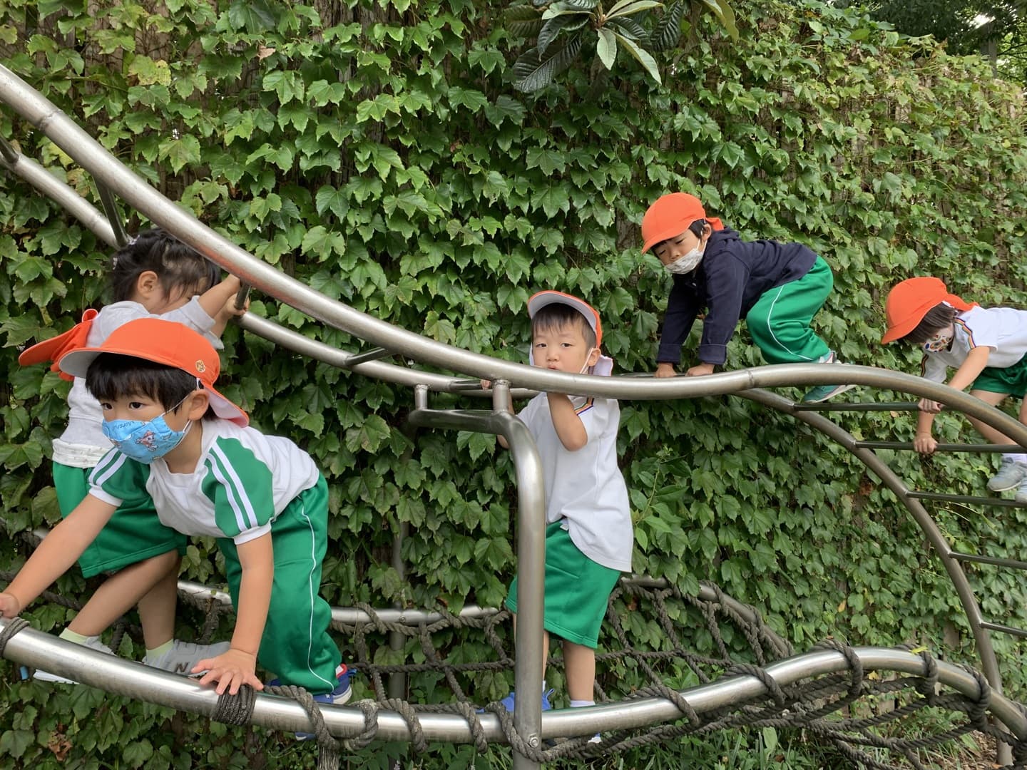 クラスごとに園舎の遊具で元気いっぱいあそびます