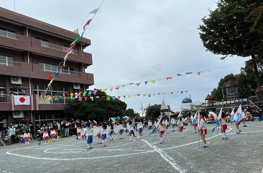 ※リズムフェスタとは・・・鼓隊とマスゲームのコラボレーションです。一人ひとりが各パートの役割を果たし、学年全員で一つの「表現活動」をつくり運動会で発表します。